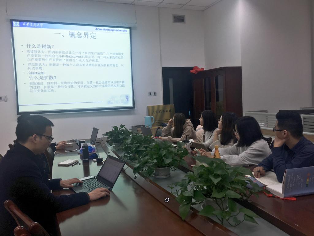 “新思读书会”2017年秋季学期第三期在主楼E座409传播学系办公室举办。本次读书会由我院讲师朱多刚博士领读,围绕着罗杰斯经典著作《创新的扩散》展开讨论。我院陈强副教授、新思读书会本学期联络人徐婧博士,以及2017级新传方向研究生参加了本次读书会。