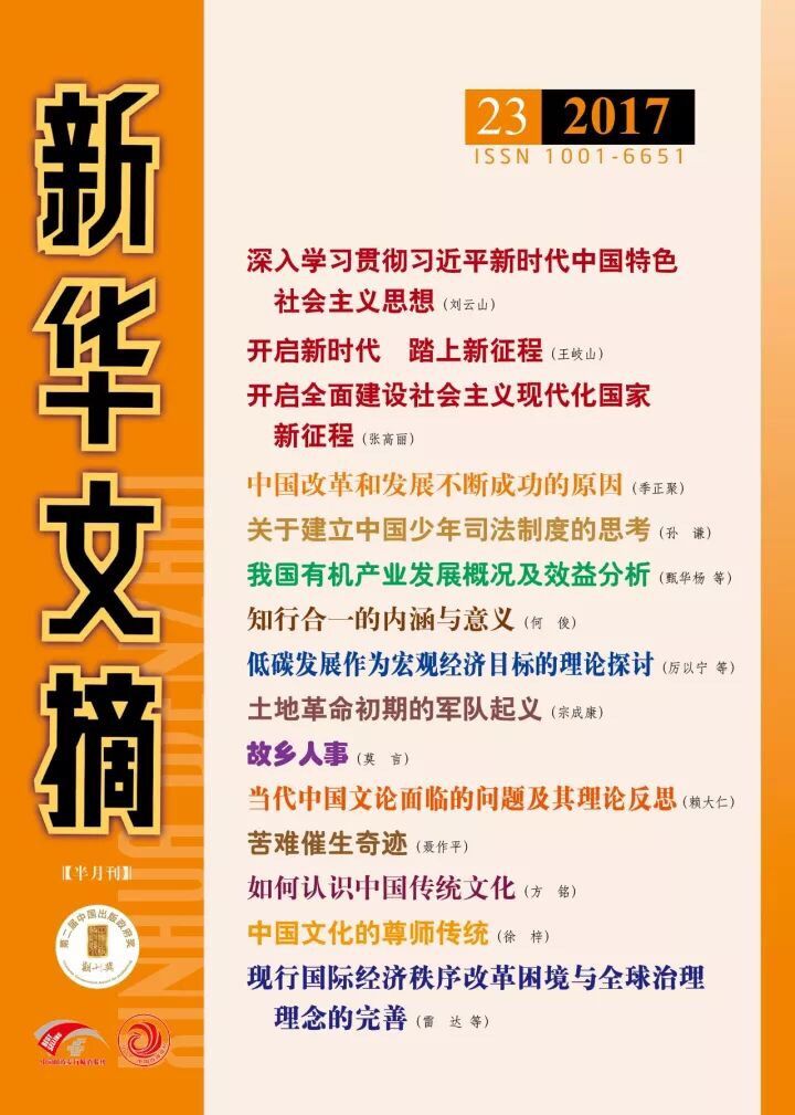 《新华文摘》是人民出版社主办的综合性、学术性文摘半月刊,因其选登文章的学术性、权威性、思想性和可读性,成为我国学术界公认的权威学术期刊之一。该文被《新华文摘》全文转载,既是对文章及作者学术水平的充分肯定,又是国产探花