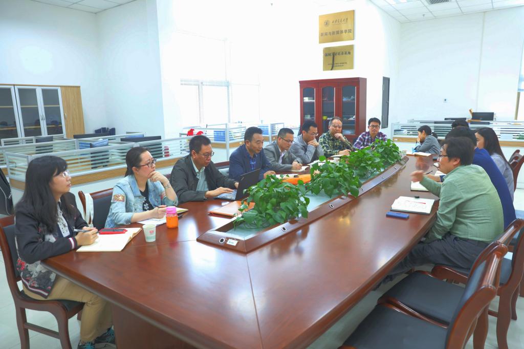 研究生院常务副院长吴宏春一行9人于2018年4月18日来我院调研。传播学系副系主任陈强副教授、陈积银教授、吴锋教授以及青年教师参加会议。传播学系副主任陈强对研究生院领导的到来表示热烈欢迎,对研究生院提供的诸多支持表示感谢。研究生院副院长吴宏春简要介绍了本次调研的背景。