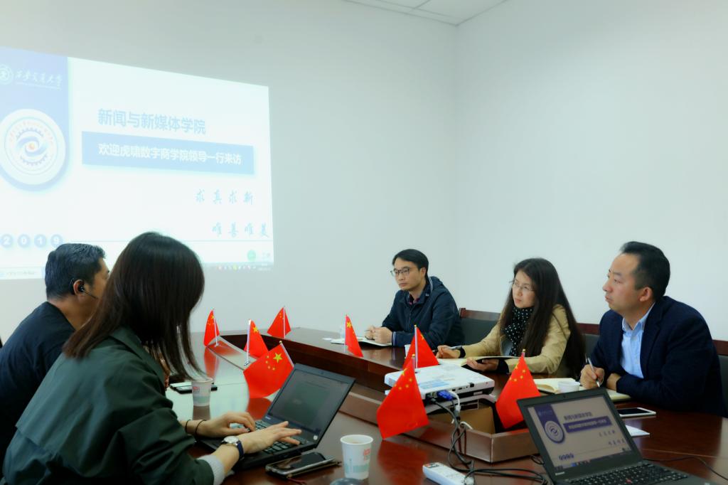 虎啸数字商学院秉承开放、分享、透明的互联网精神,基于前瞻的理念与洞察,强大的数据驱动力,丰富的数字营销案例积累,致力于新经济、新媒体、新治理领域的智库与智库平台,提供网络在线课程支持。虎啸数字商学院领导对我院人才培养、课程体系建设、协同育人基地建设、学术会议合办等表现出浓厚兴趣,并期待随着合作的深入后设立奖助学金,支持在数字化传播与营销中有突出成绩的老师和学生。