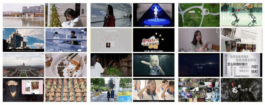 展映的22部优秀新媒体作品都是由学生自编、自导、自拍摄制完成的,题材丰富,形式多样,贴近生活。作品《虚拟恋人》表现了人工智能时代,虚拟恋人入侵现实生活,导致一队年轻人感情破碎的故事;作品《手机AI》反思人们高度依赖人工智能,导致自主学习能力与独立思考能力快速退化的故事;作品《网络迷踪》表现了大数据时代人们使用社交媒体引发隐私泄露、遭到网络跟踪的题材;作品《“疫”过天晴》《欢迎回家》表现了新冠疫情后人们经历浴火重生对生活倍加珍惜,经过漫长假期对回归校园生活热切期盼的故事;作品《带上口罩吧》通过隐喻方式表现人们习惯了口罩(面具)下隐藏情绪的生活、习惯了冷眼旁观和冷峻审视的主题;作品《一日看尽长安花》通过巴基斯坦留学生的眼睛来展现丝绸之路起点——古都西安的前世今生和创新发展;作品《榕树下的守望》通过留守儿童的视角展示了云南施甸通过易地搬迁、就业扶贫、产业扶贫,实现生活改善经济发展的故事;作品《数说金砖五国经济发展之路》通过数据可视化形象的展示了金砖五国经济发展之路及其影响因素。作品《媒介技术知识科普》通过定格动画生动有趣的展示了人类自诞生以来的媒介传播技术的发展历史。作品《石之海》通过改编动漫作品,拍摄出了真人版的奇妙冒险;作品《绿缘——交大爱情故事》生动刻画了校园爱情的甜蜜美好,传达了彼此成全这样的正确爱情观。